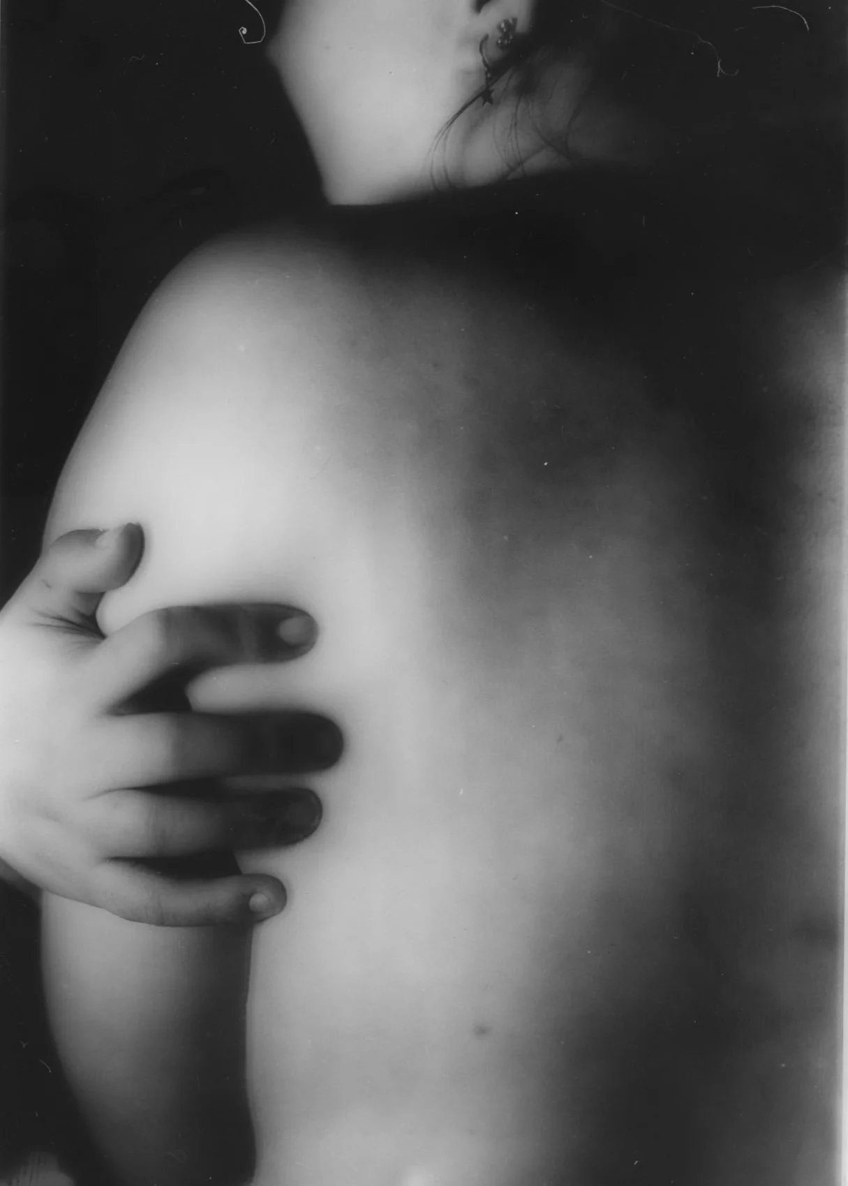 Experiments in materiality is the umbrella term Morris has given to the period of time when she was experimenting in the darkroom, printing on to different materials using a process called liquid light. Morris uses different materials with texture or reflections can add another layer of meaning to an image, whist also providing a separate sensory experience for viewers to interact with. Morris started this series with the idea that printing skin onto sandpaper would give people the chance to experience what her eczema would feel, and look like.